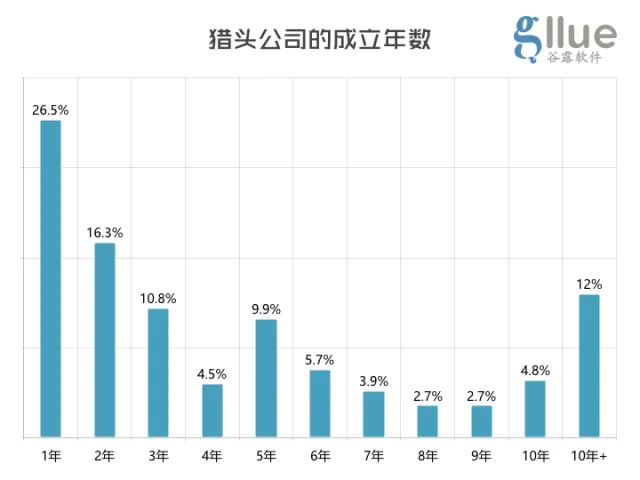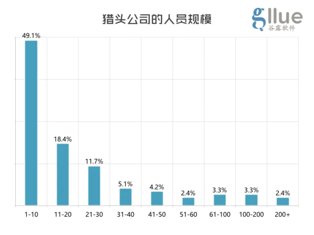 谷露猎头软件最近发布的调研报告中显示,超过1/4的猎企成立时长不到1年,10人及以下的猎头公司占据约半数的市场份额,这也从侧面反应出国内猎头市场的现状。