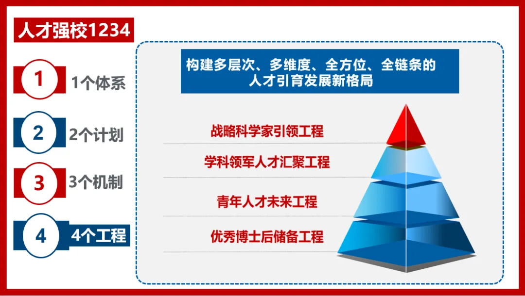 “四个面向、高精尖缺”,实施一流学科领军人才汇聚工程。
