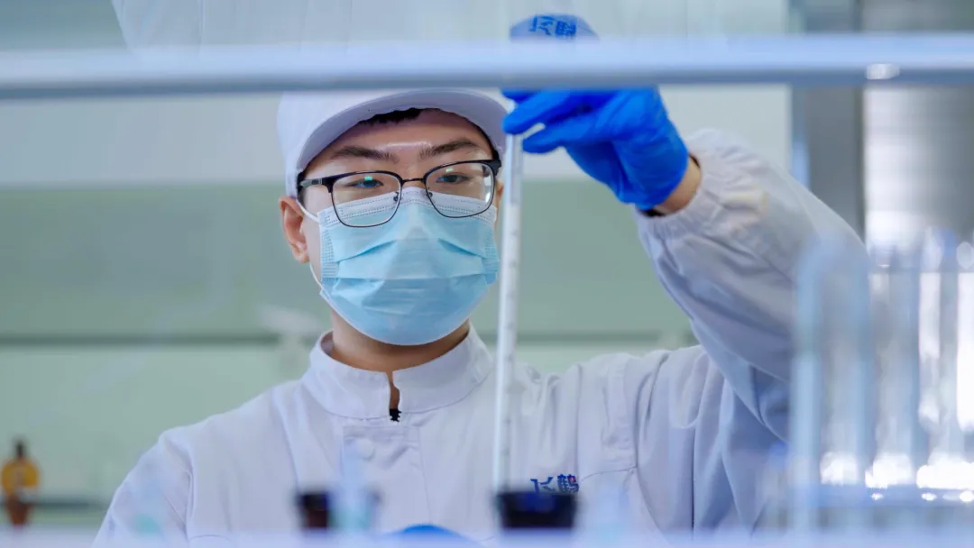 图/飞鹤研发实验室内,研究员正在进行样本检测