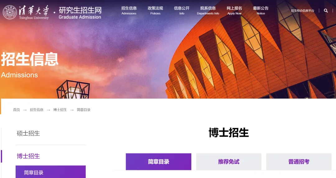 清华大学研究生招生信息网址:https://yz.tsinghua.edu.cn