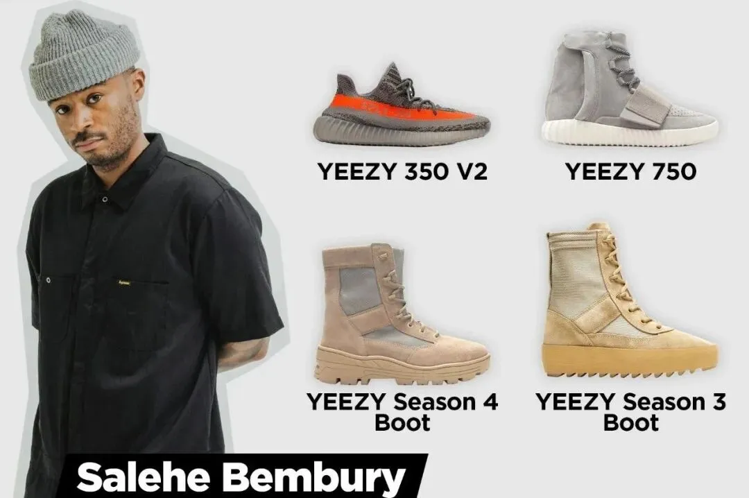 2016 年 Salehe Bembury 离开 YEEZY ,2017 年转投奢侈品牌 Versace,引起了大量的关注。短短两年多的时间, 从 Versace 运动鞋首席设计师一路晋升到 Versace 运动鞋与男装鞋类的副总裁,今年 33 岁的 Salehe Bembury,已经成为了圈内最有潜力的黄金一代。Salehe Bembury 毕业于雪城大学,攻读工业设计,毕业第一份工作在美国日用鞋履品牌 Payless 担任鞋类设计师。之后又陆续加入了 Nike 旗下子品牌 Cole Haan,以及男士鞋履品牌 Greats Brand 参与设计工作,积累了大量的经验。2015 年 Salehe Bembury 通过朋友介绍,加入 YEEZY 担任鞋款设计师,迎来了职业生涯的转折点。作为第一批 YEEZY 核心成员,品牌初期的人气款式 YEEZY 750、YEEZY 350 V2 就有 Salehe Bembury 的功劳!
