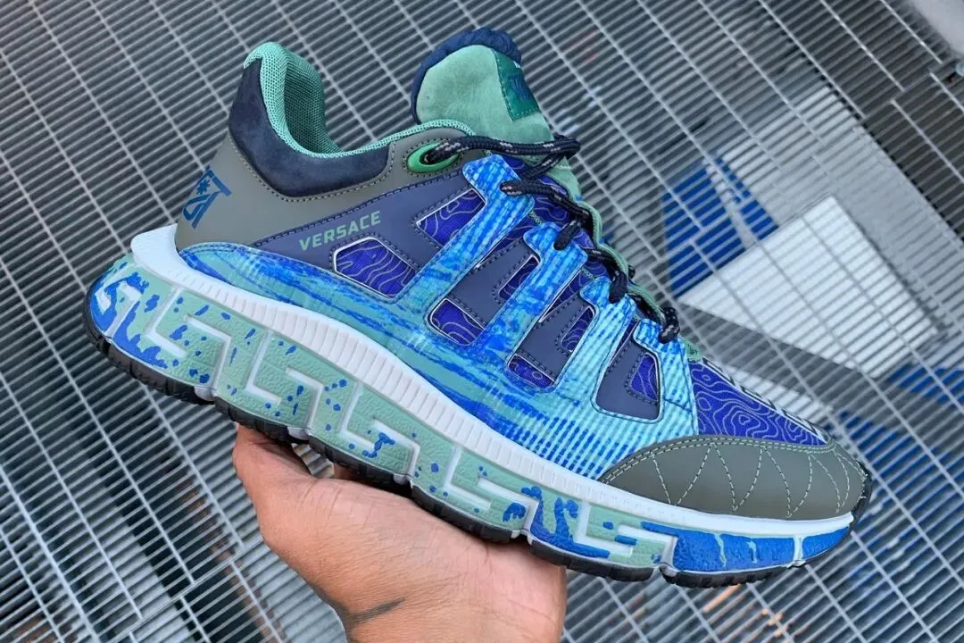 接下来 Salehe Bembury 还全程负责了 YEEZY Season 3、YEEZY Season 4 的军靴设计。Salehe Bembury 表示:我第一次在加州见到侃爷的时候,很感激他给我提供了这个机会,但他只说了一句话「让我们改变世界」!当时的时装行业几乎没有什么有色人种,侃爷确实给了我们很大的鼓舞。Versace TriGreca Fall 20202017 年受到复古风潮的影响,奢侈品牌开始纷纷扩张自己的运动鞋产品线。Salehe Bembury 在 Versace设计的第一款球鞋 Chain Reaction 也收获了不少人气,直至近几年 Versace 的一些经典的运动鞋款都由 Salehe Bembury 负责。