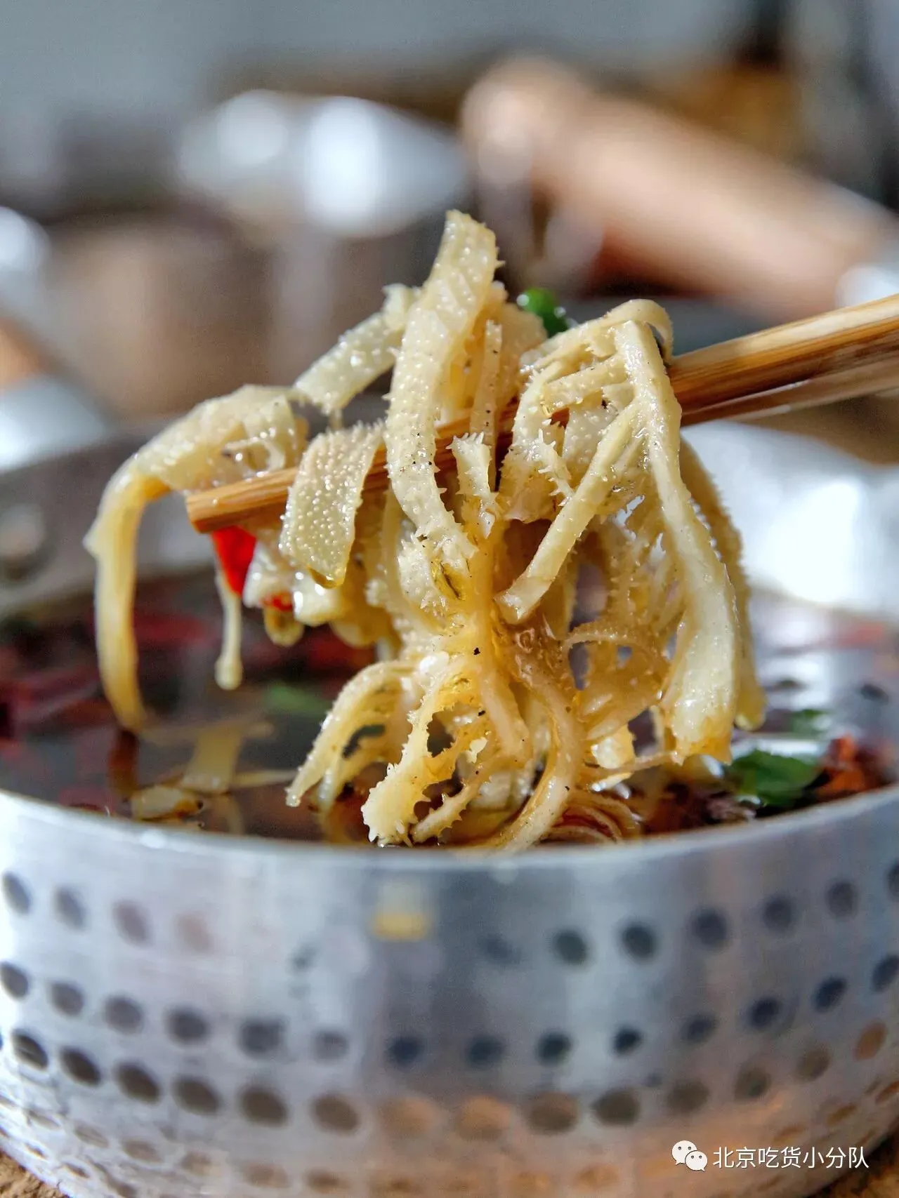 【马勺筋皮】选的是牛肋骨上面的一层筋,柔软中带着筋道,不难嚼。东北人超爱吃这个部位。
