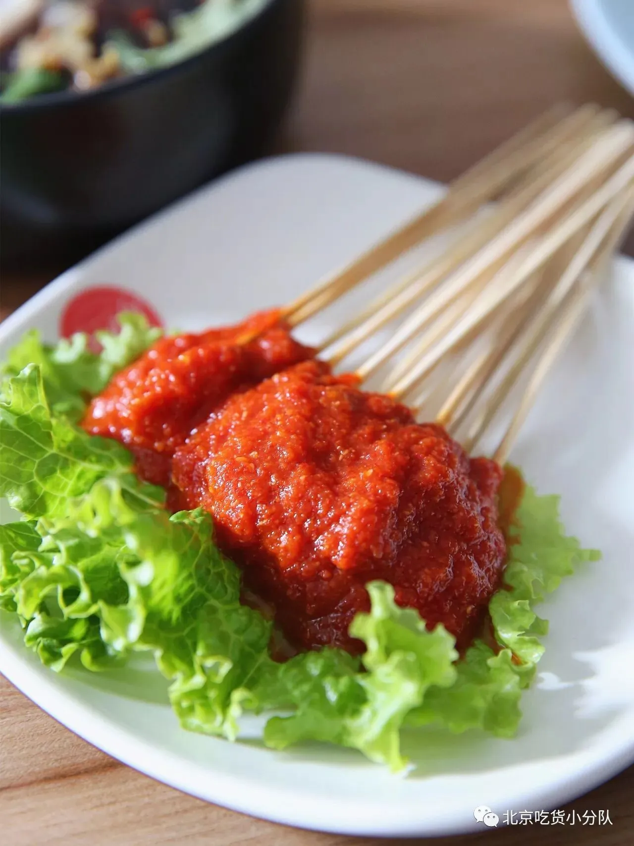 一把火红的【生卤小肉串】,真的是很纯粹的生牛外脊肉,东北银儿喝酒可离不了它。为了确保当日新鲜,绝不用隔夜的肉,所以每天限量只做几斤。