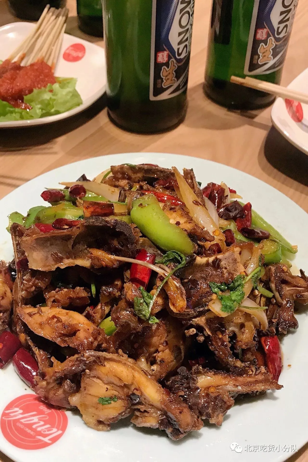 和常见的烤鸡架完全不同,他家这【辣炒鸡架】先炸后炒,裹足了甜辣酱汁,后又洒上孜然粒。吃起来干香微辣,还甜甜的。(嘬嘬手)