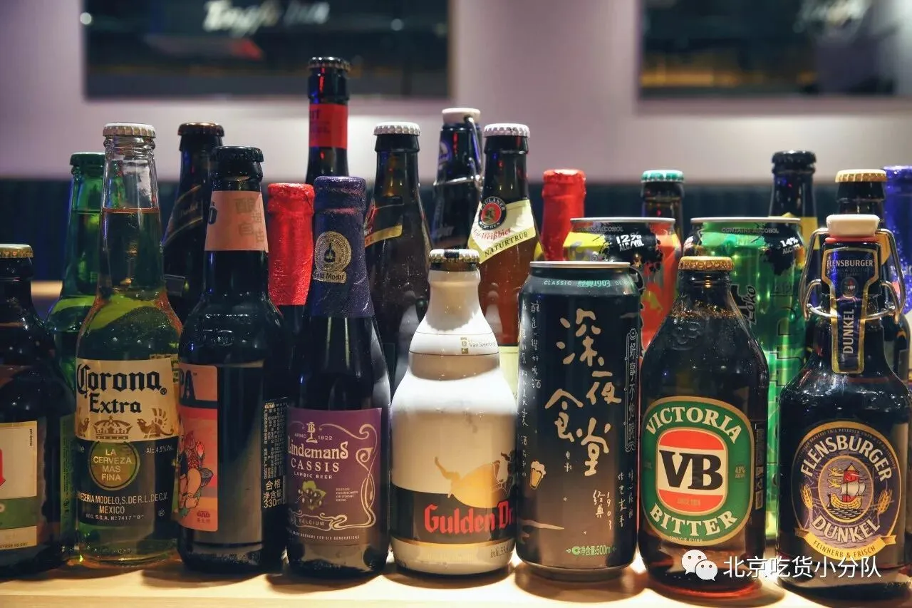 除了老雪,他家还有两大柜子的精酿啤酒。几十种酒能摆满一张桌子,菜单上随便点一道菜都像下酒菜~