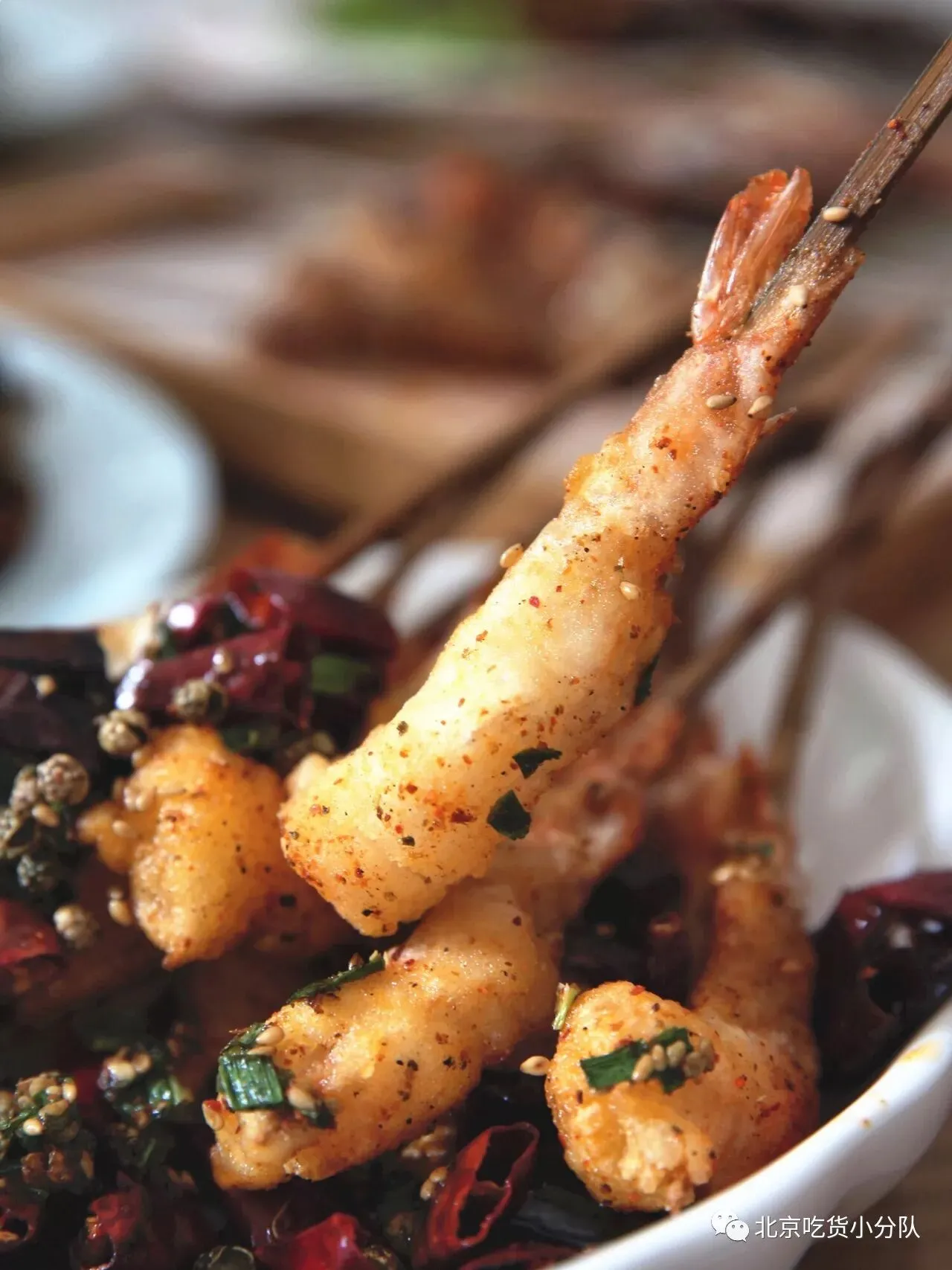 点单率很高的【糊辣串烧虾】已经帮大家把虾皮剥好了,咬下去就是软嫩的虾肉。表面洒了胡辣粉,吃起来椒香味很足。