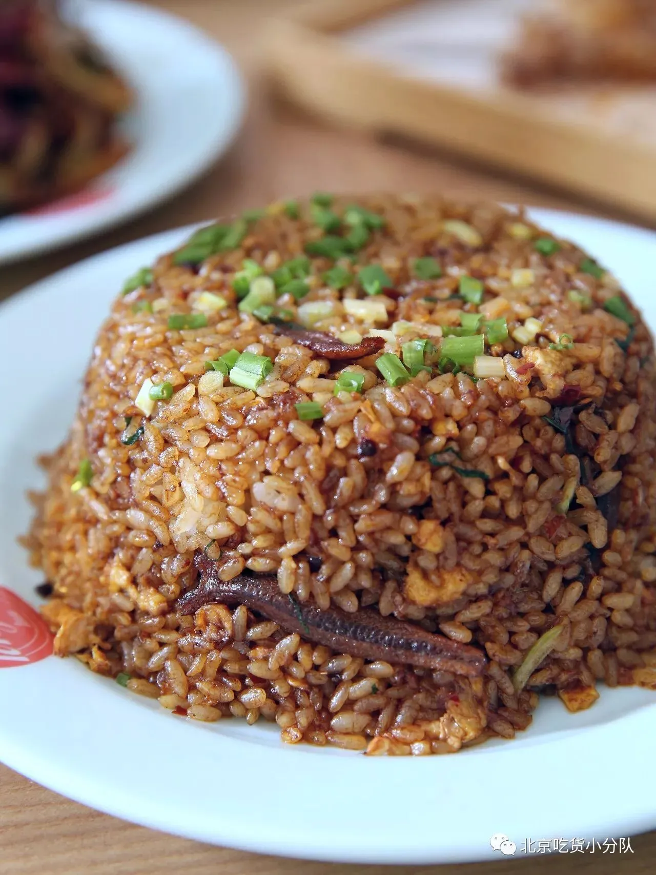 这位可不是普通的酱油炒饭,【同福炒饭】里有不少酱鱼干,每一勺都能挖出惊喜。和米饭拌在一起吃,还有淡淡的辣味。