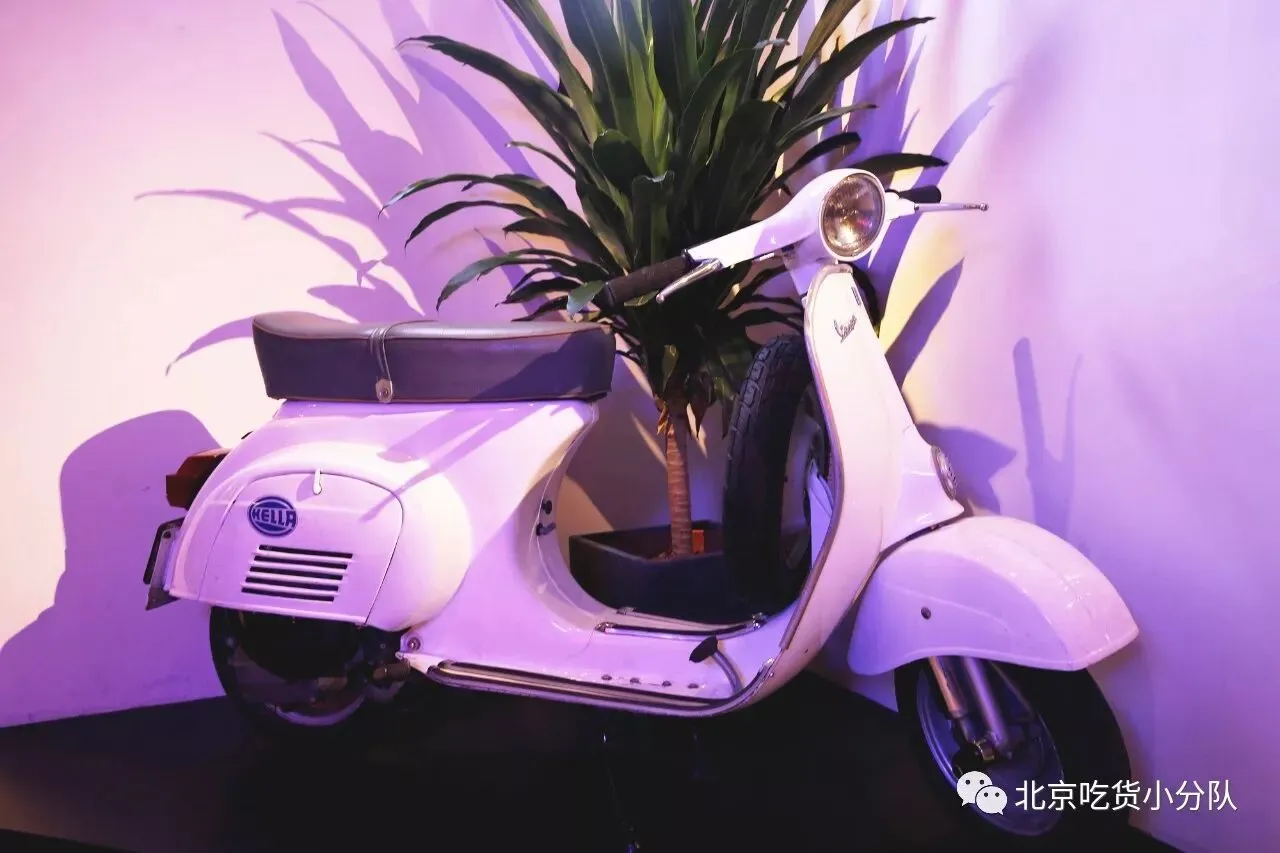 店主喜欢收藏,每个店都陈列着不同年代的意大利摩托车Vespa。北京这家店放的是这台,爱好者可以去看看哦~