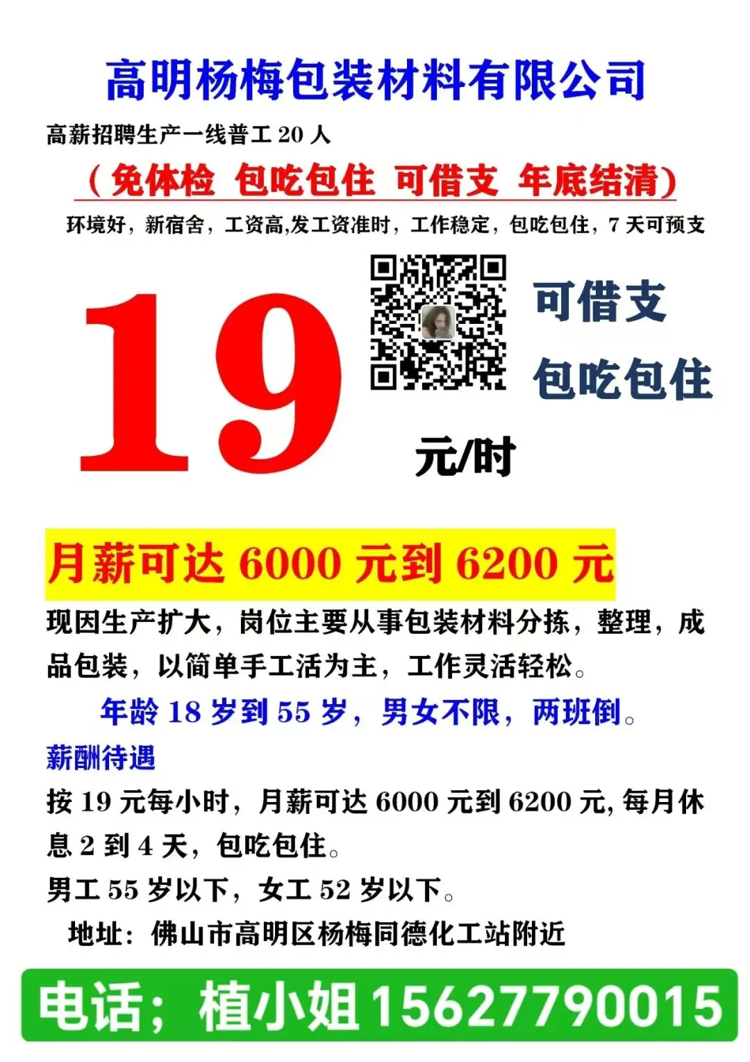 岗位要求:负责打包装、上挂/下挂(简单易学);每日8.5小时,加班有加班费