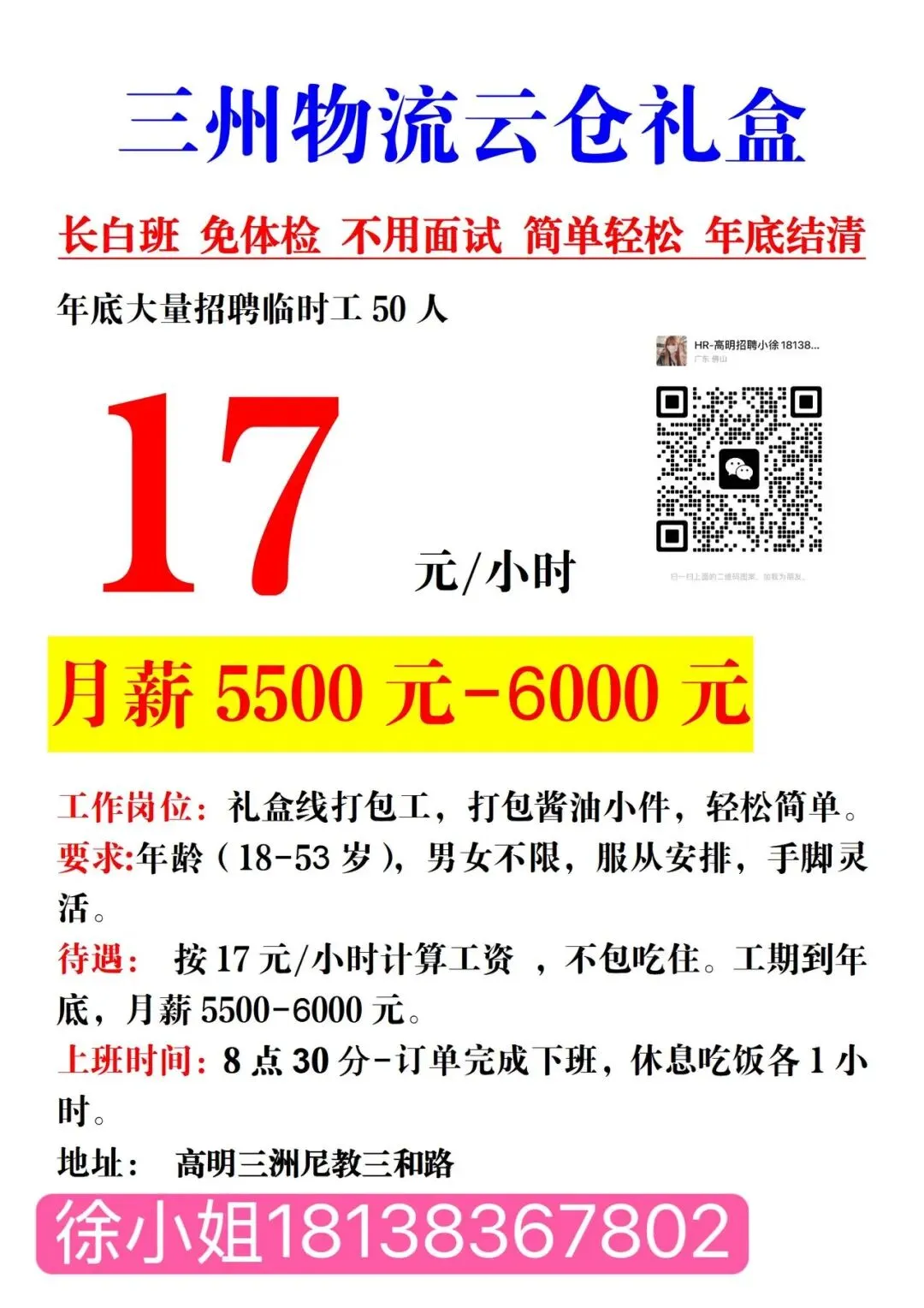 薪资待遇:17-19元/小时