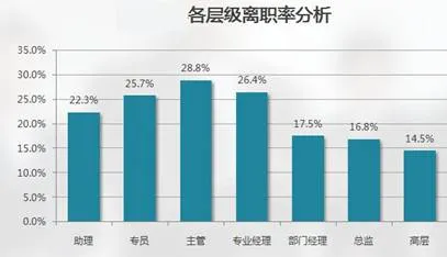 你会发现研发类离职率最低,这种是最能激发人成就感的岗位。所以越是能让人体现到自身价值越能久呆,而对于俗称可以赚快钱高收入的销售岗却是离职率最高的岗位。