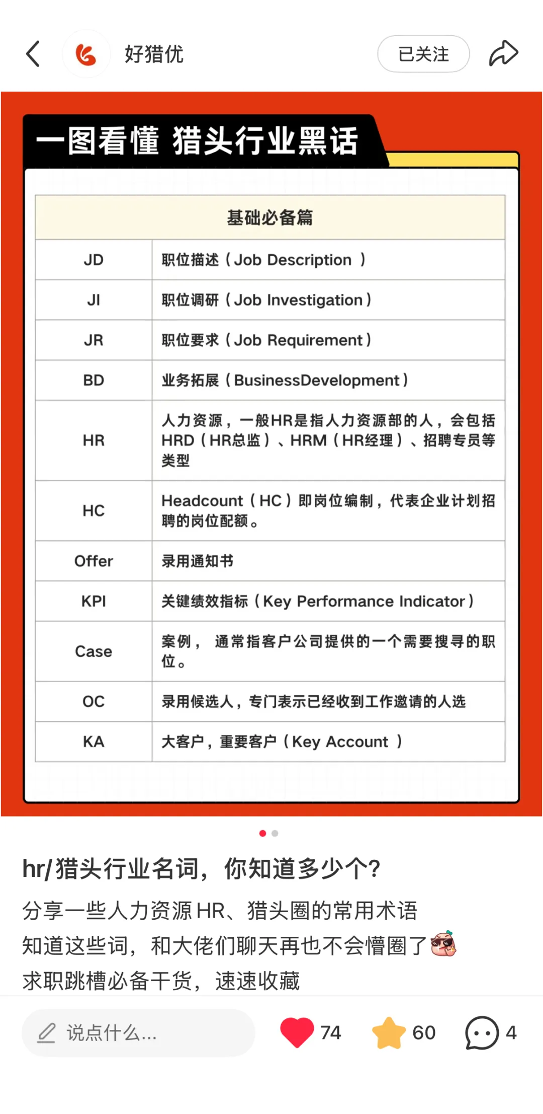 以猎头行业为例,我们可以在各大平台、社交软件上搜索关键词,快速获取官方账号整合的行业词汇:
