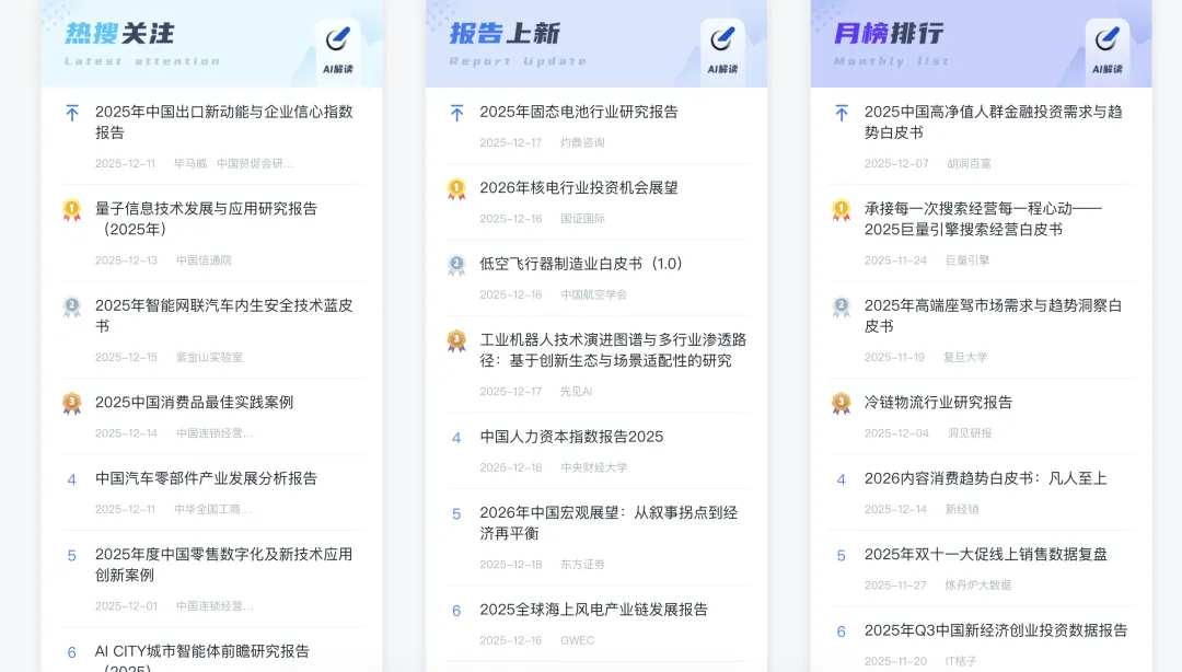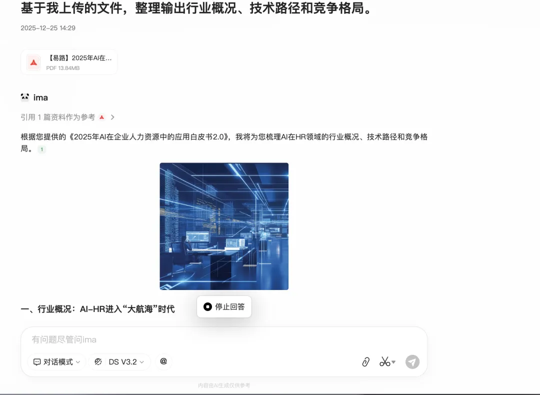 能直接基于你上传的权威文档(如券商研报)进行精准问答,快速输出行业概况、技术路径和竞争格局。