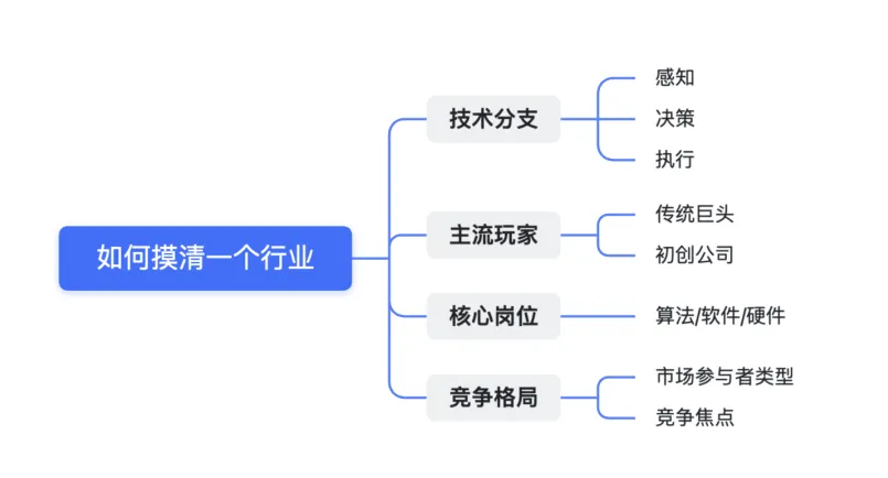 光知道信息还不够,我们需要深度梳理,消化为结构性信息。这里可以使用企业微信文档、飞书等的思维导图工具,创建思维导图,边阅读信息边梳理。我们可以将之前获取的信息,大致归纳为以下几个大板块梳理: