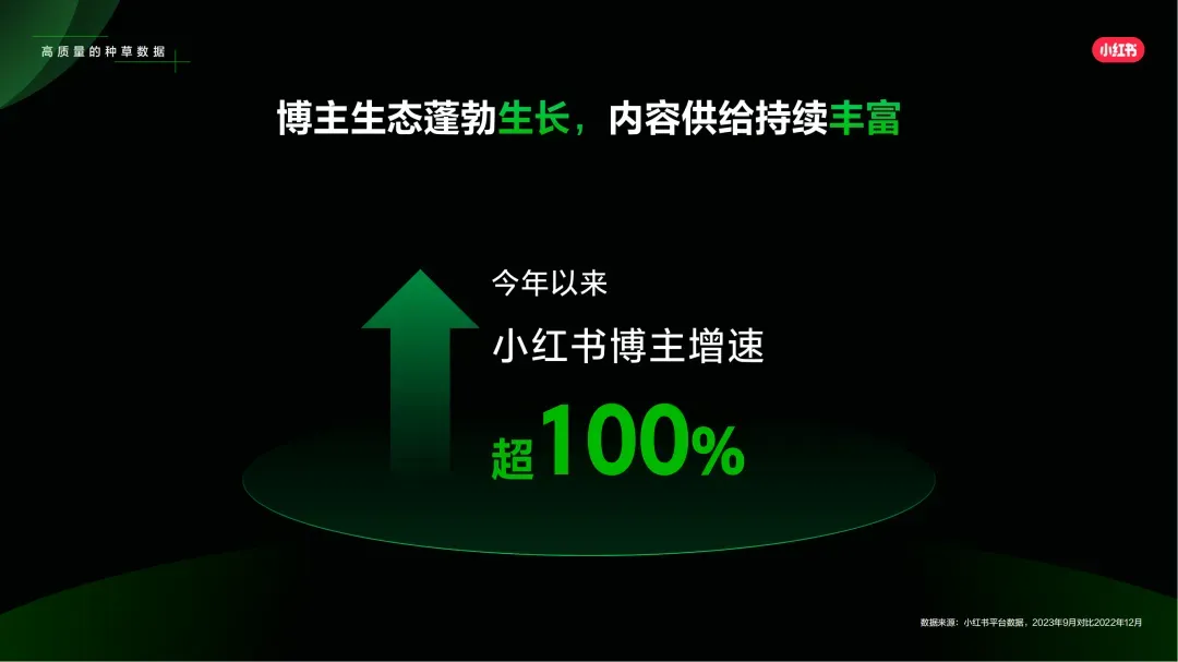 2023年9月,小红书博主规模高达8000万,仍然保持高速增长