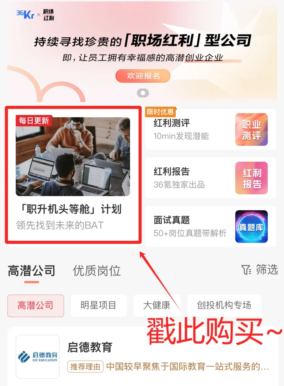 一年的筹备,4次迭代,36氪职场团队发布「职升机头等舱」计划——致力于帮助求职者打破行业信息差,领先找到下个周期里高潜赛道的红利机会。