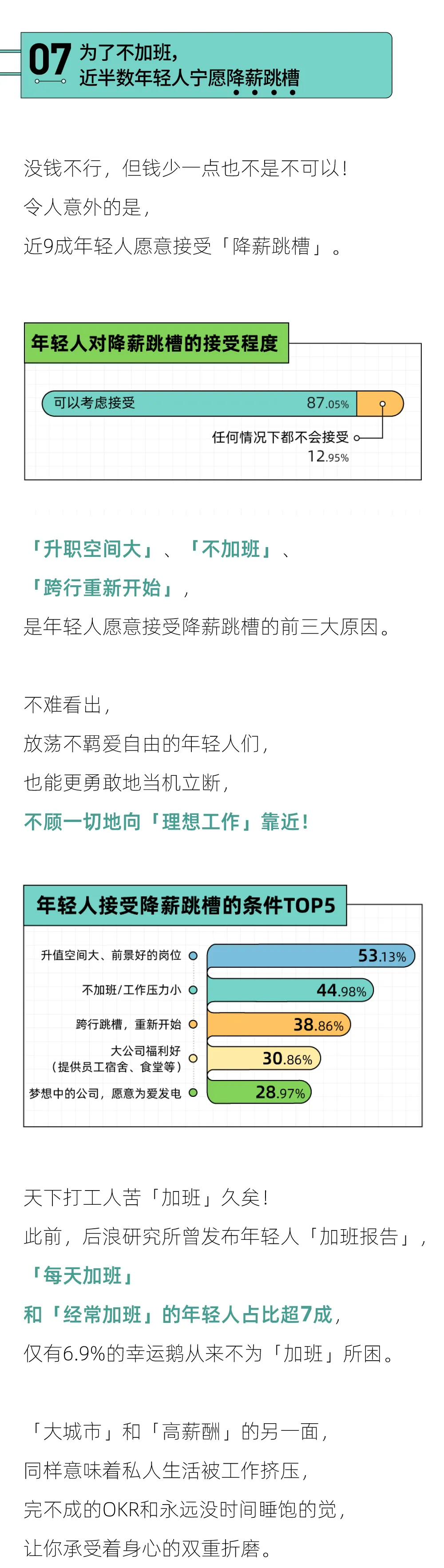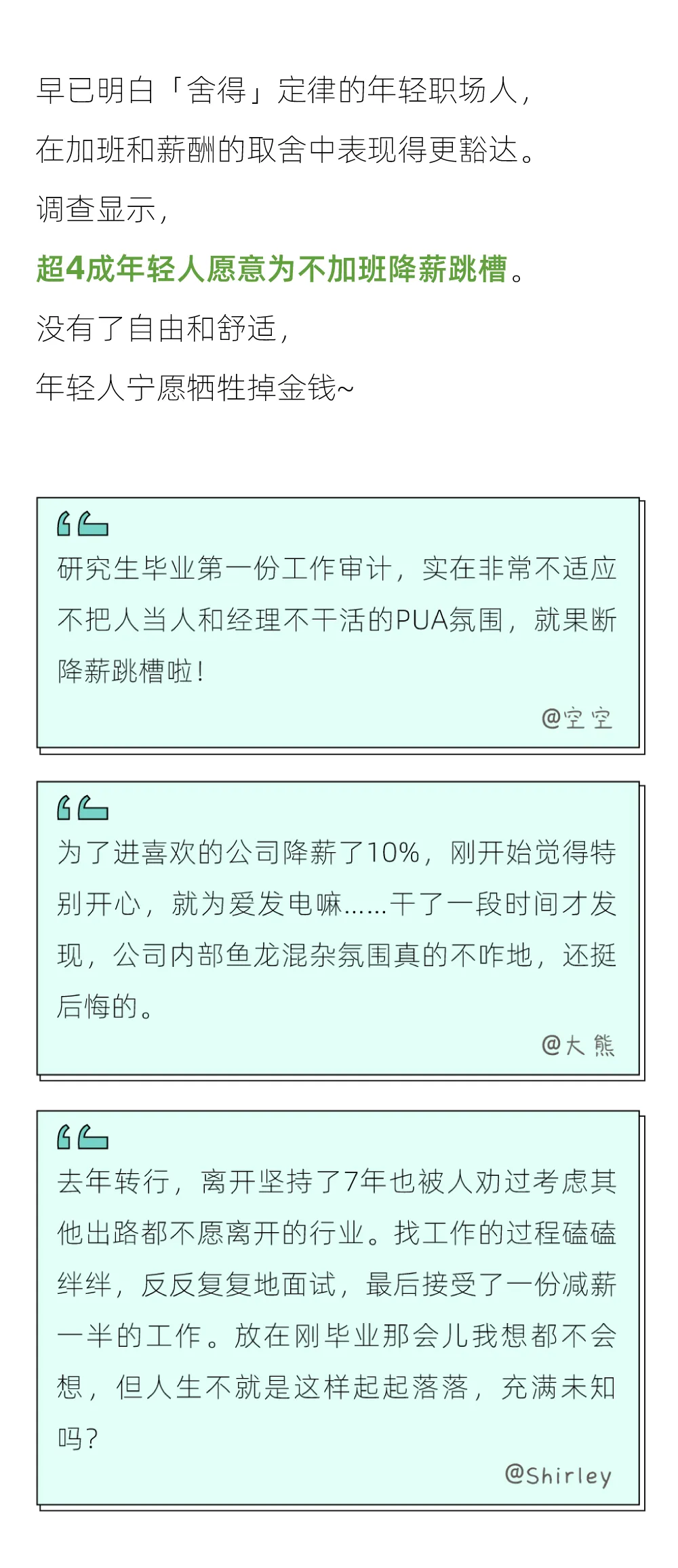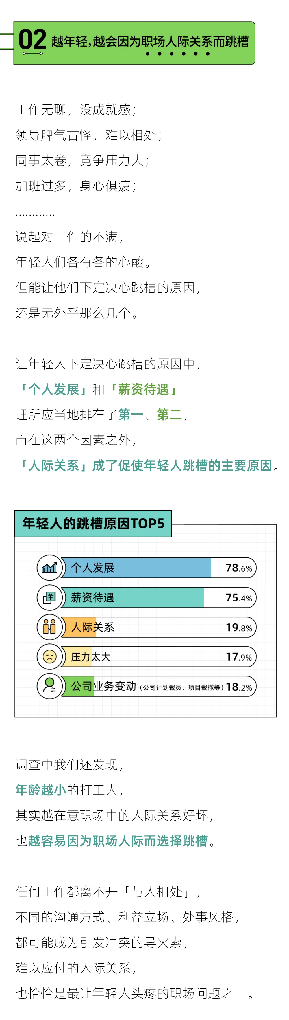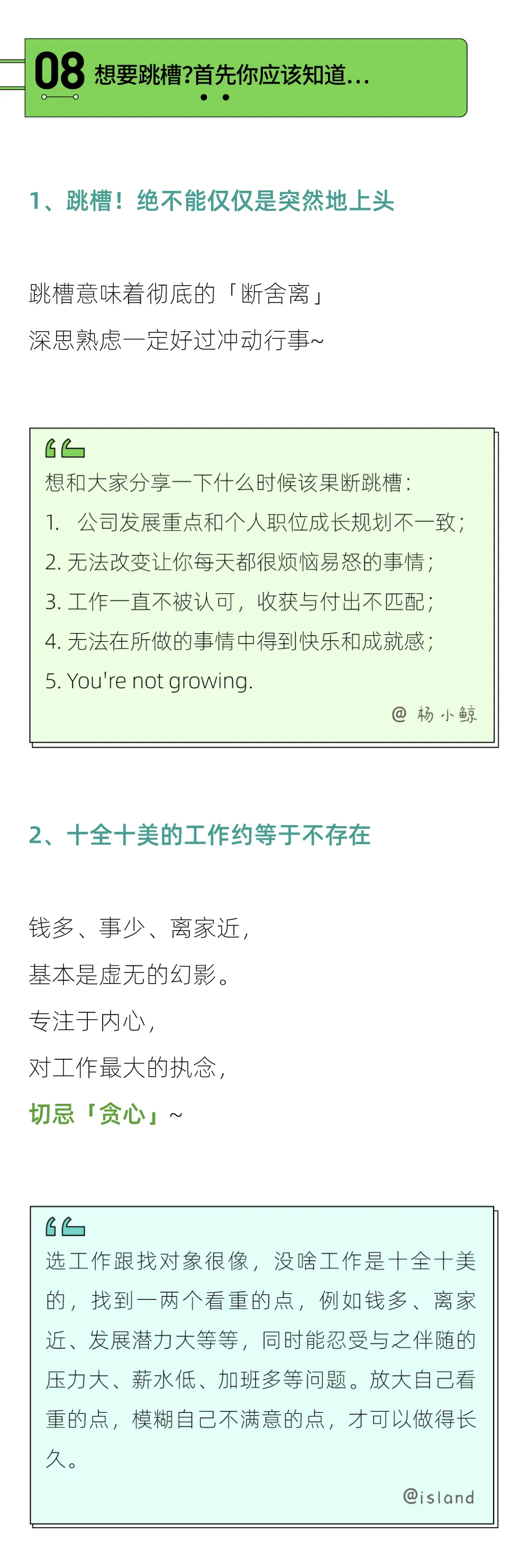 我们不鼓励年轻人频繁跳槽,更希望你可以在跳槽前理清自己对于工作的价值判断。要知道,这个世界上没有完美的领导、完美的同事或完美的工作,鱼与熊掌难以兼得,想要找到真正适合自己的工作,就要明白自己最想要的到底是什么。