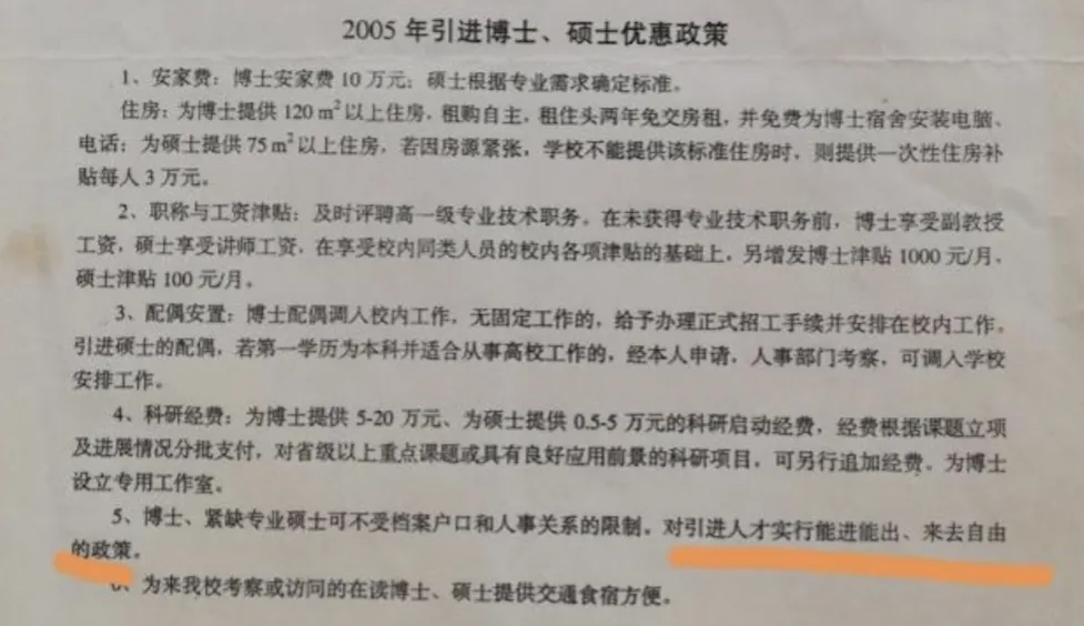 傅雯入职时,临沂师范学院施行的人才引进政策。本文图片均由受访者提供与傅雯相似,陈超(化名)在2005年硕士毕业后也经由人才引进渠道入职临沂师范学院。两人在入职后结为夫妻,多年来一直在该校工作。直到2021年,一件事情打破了这个局面。这一年11月,傅雯的丈夫陈超拿到某985高校调函后便向学院提出离职申请。傅雯介绍,临沂大学的离职程序要求,职工先跟学院领导提出申请,如果学院领导签字同意,就可以上报到人事处,如果人事处同意,则再上报给学校领导做决策。但学院拒绝了傅雯丈夫的离职申请,理由是:学校需要他。据傅雯陈述,被拒后大半年内,其丈夫多次尝试通过电话以及面谈形式跟学院沟通,但当时学院领导明确表示不同意其离职申请。直到2022年6月,学院党委书记终于同意签字,但人事处却要求夫妻教职工一方调走,配偶必须辞职。听完丈夫的转述后,傅雯非常震惊,立马去找学院党委书记。对方再次向她明确了人事处这一要求。傅雯不能接受,“作为两个独立工作的教师,无论如何都不应该强行绑定在一起”。傅雯解释,自己与丈夫走的都是正常应聘、人才引进程序,并非作为家属被安置工作,两人是工作之后才结婚的。根据傅雯提供的就业协议书显示,她与临沂师范学院签署协议的日期为2005年3月,入职教学岗位;协议书上“婚否”一栏清楚注明为“否”;专业为美术学(油画方向),硕士毕业时间为2005年6月。而两人结婚证上显示的领证日期为2005年10月。 在傅雯看来,“对引进人才实行能进能出、来去自由的政策”是校方的承诺,正常调动是一位教师合法的权利,自己没有做错任何事情,为何要被“捆绑离职”?傅雯说,“这个条件可以说是要挟。” 2022年6月30日,傅雯又给该校的人事处处长发去信息,表示不会因为丈夫的离开影响到本职工作,而人事处处长给傅雯的回复则是,理解傅雯丈夫到更高平台发展的意愿,“但也请您们理解学校对人才的渴求以及学科、专业建设对人才的需求。同时,学校正常的人才流动也有规章制度,我们要按规定的程序办理”。