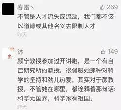 我们每个人的素质构成中国教育、科学、技术发展的大环境。假如某天,颜宁和那些跟她一样优秀的人才能静悄悄地在中国和世界各地自由往返,“不带走一丝云彩”,那才是我们真正成为科技强国时。