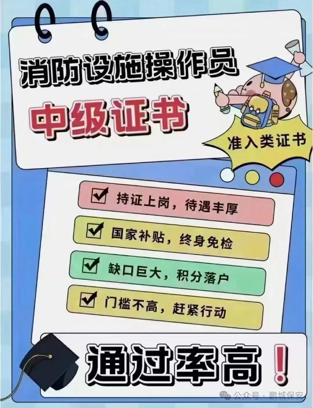 中级消防证是由国家人力资源和社会保障部印制、应急管理部消防救援局验印的全国消防行业特有工种职业资格证书。证书全国通用,可上网查询,终身有效,是消防和监控等相关岗位必备证书。