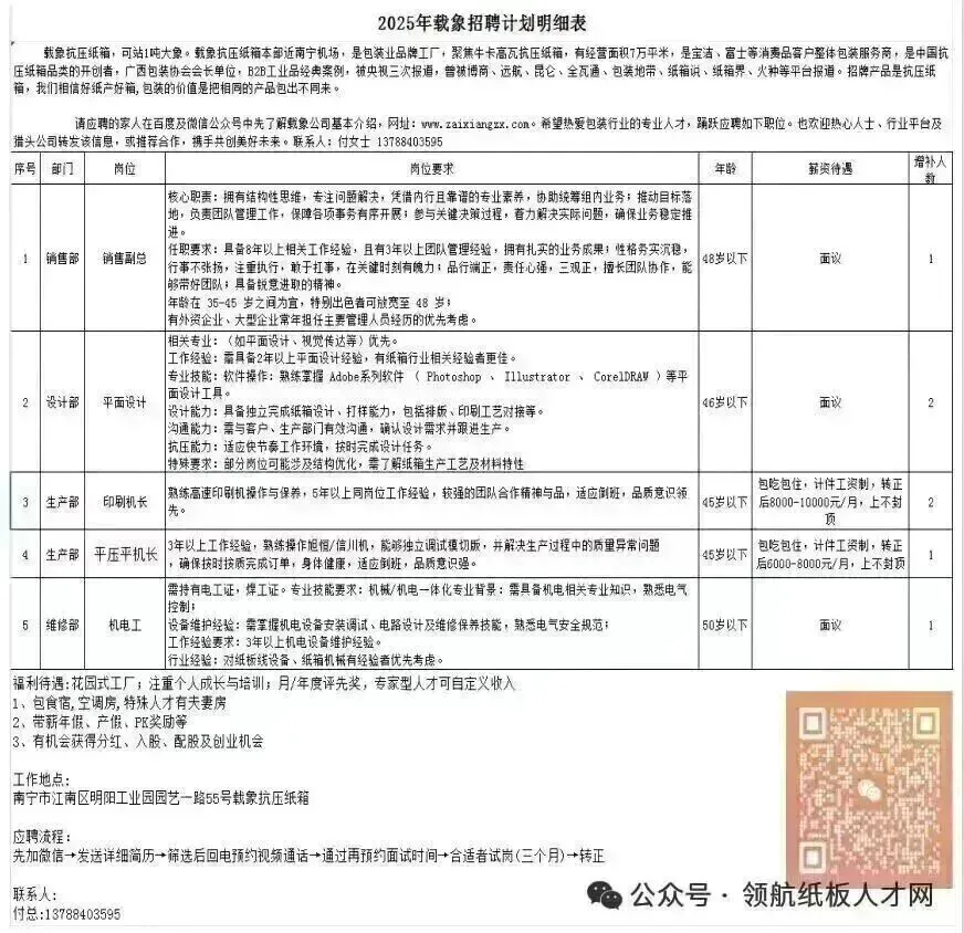 (3)发展:可晋升至生产厂长岗位,享受管理技能培训(如生产计划制定、彩印工序成本管控课程)