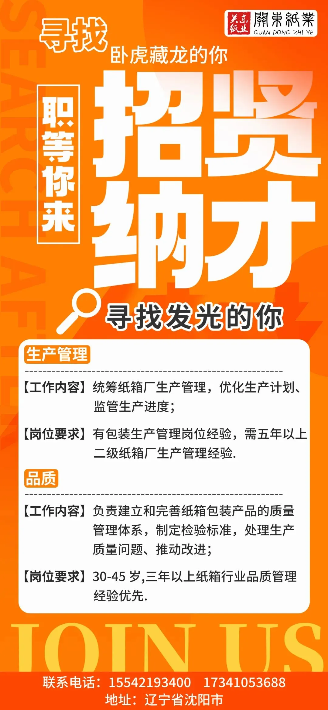 1.招聘纸箱包装营销经理3名男女不限,年龄30-50周岁以内,要求有五年以上工作经验优先录用。