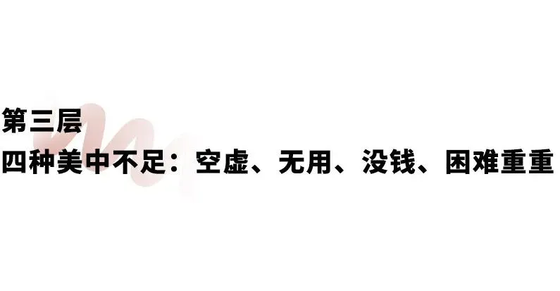 04. 仅仅缺“社会需求”的体现是:满足,但感觉自己做的事情没什么用 (Satisfaction, but feeling of uselessness) 当我们真心体会到自己的工作是被社会需要、有社会价值的时候,我们在内心深处对自己的评价也是肯定的、稳定的。