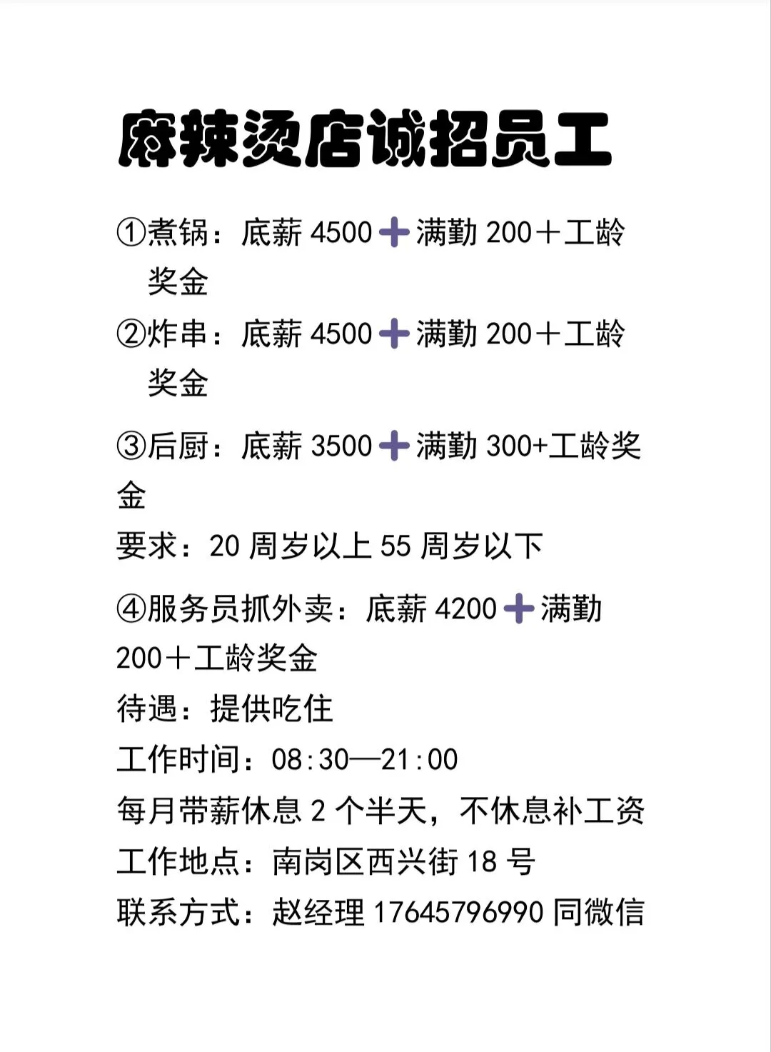 要求:有过煮麻辣烫工作经验的