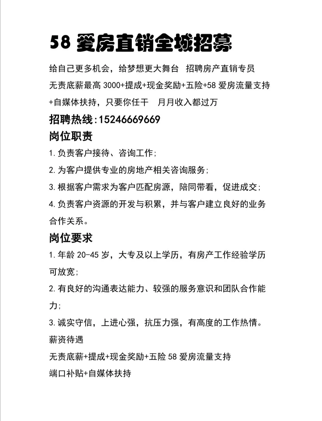 岗位要求:有销售经验者优先录取;带薪培训要求年龄 20-42岁,工作态度端正,良好的沟通能力 ;