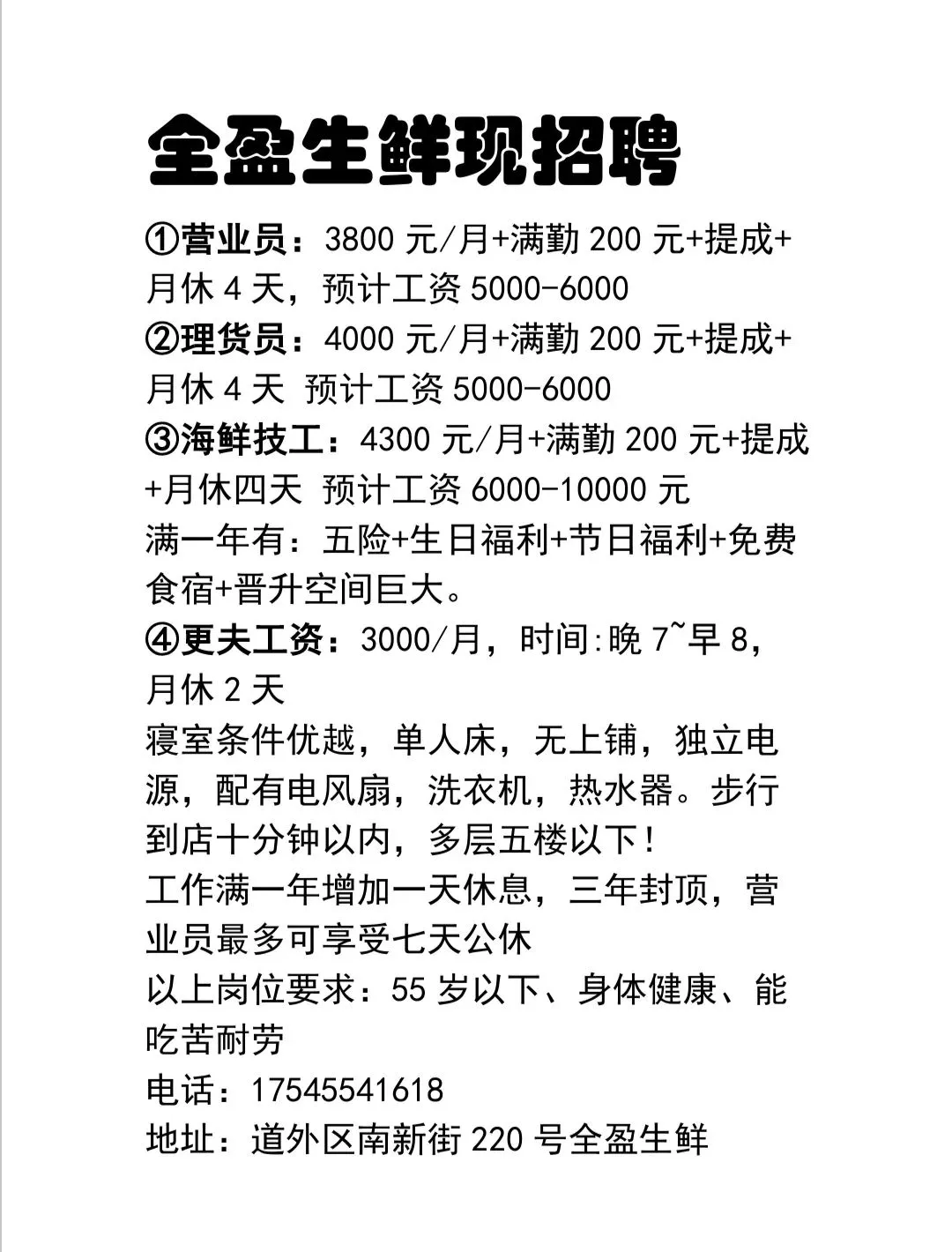②年龄:18岁——55岁之间,身体健康,无不良嗜好,有相关工作经验者优先。