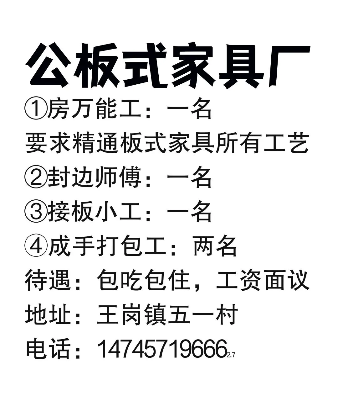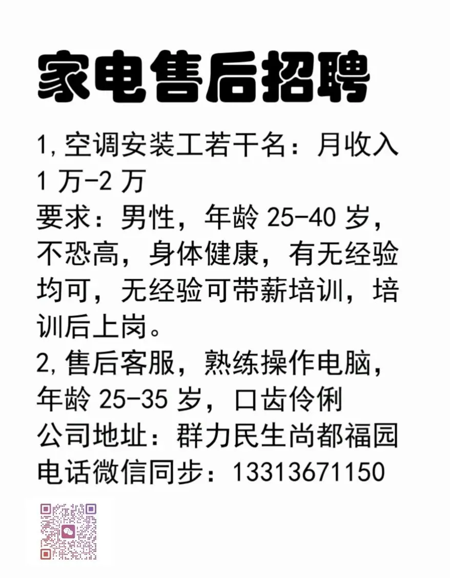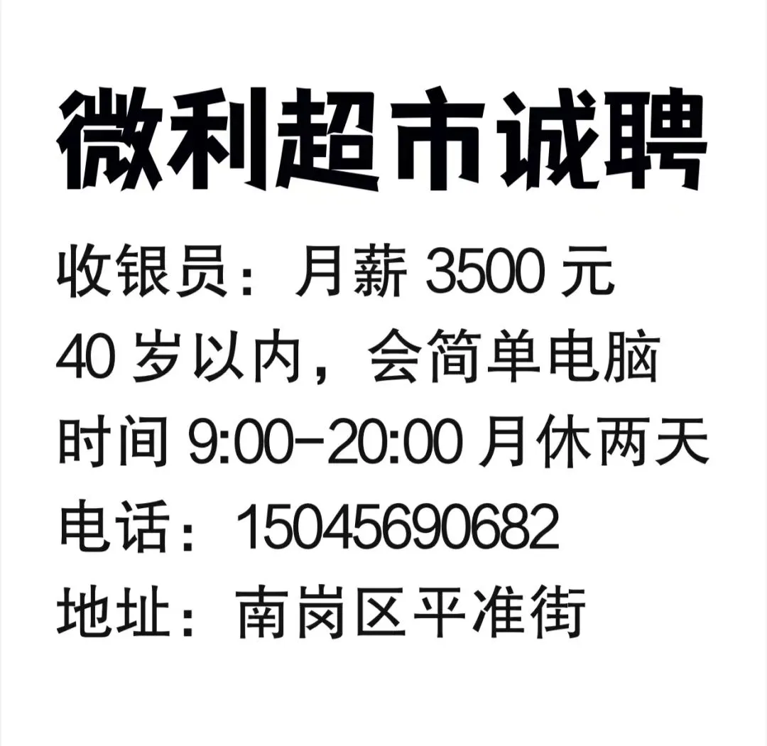 要求:家住江南片区,年龄35至55岁,做过快速消费品2年工龄以上,男女均可,工资面议。