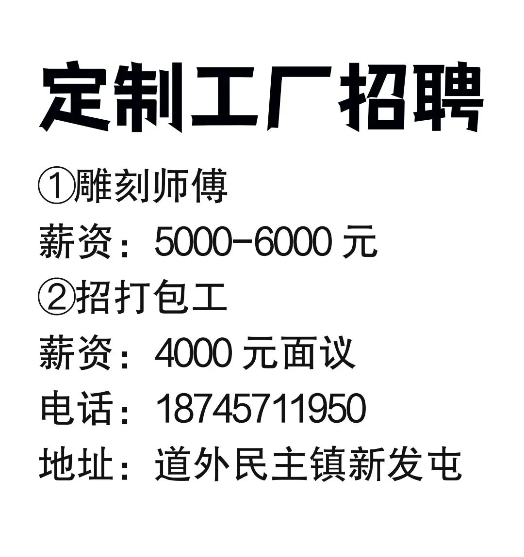 工作地址:哈尔滨市香坊区恒大丁香郡一号楼门市