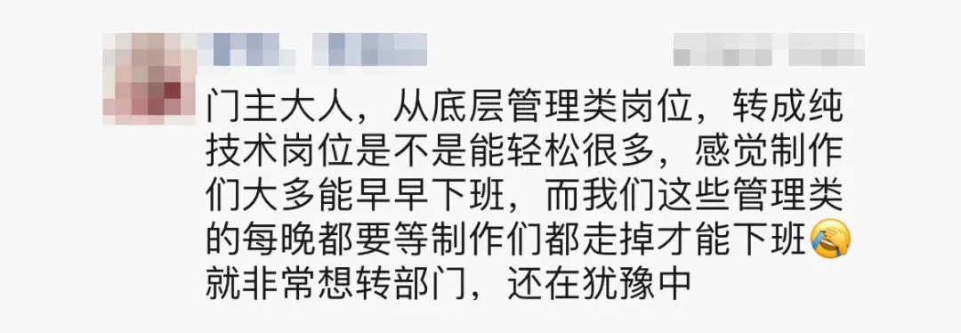 技术岗肯定比管理的体能上更累,至于你们公司制作们居然可以早早下班,也是行业奇观之一了。