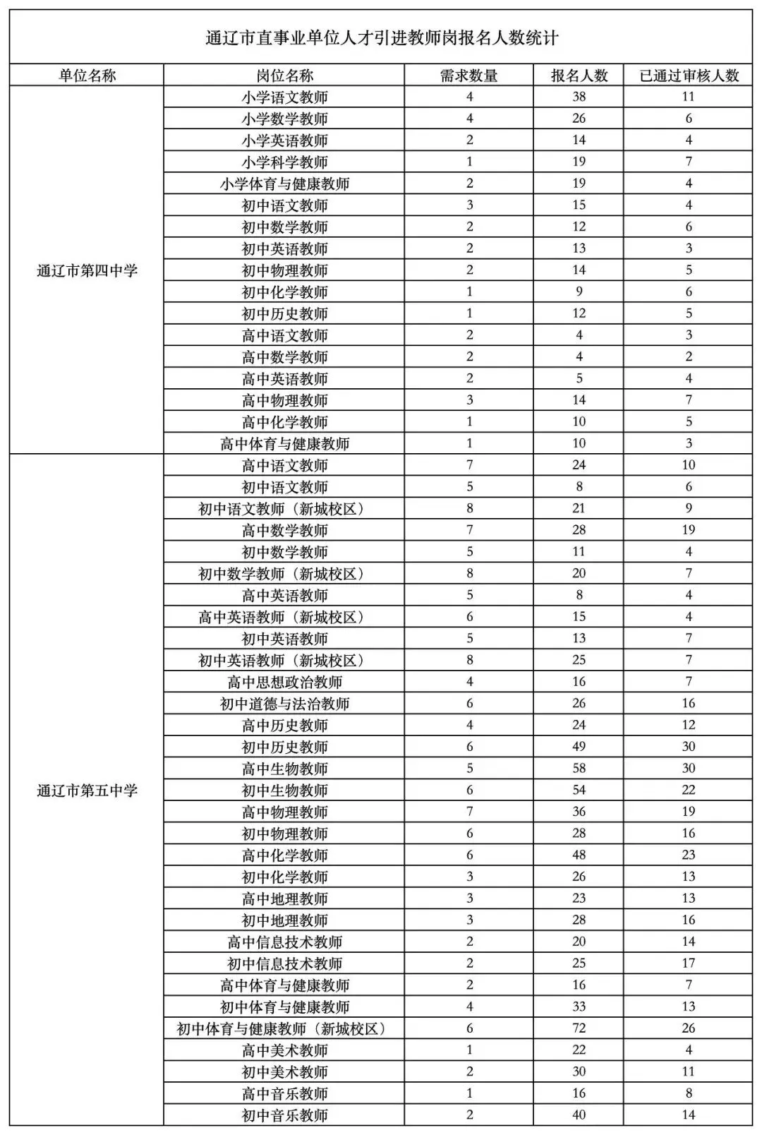 2026年通辽事业单位人才引进教师岗报名人数统计(1月3日统计)