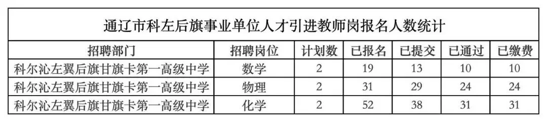 由于扎鲁特旗报名系统无法查看实时报名人数,所以只统计了市直、科左后旗和库伦三个旗县。