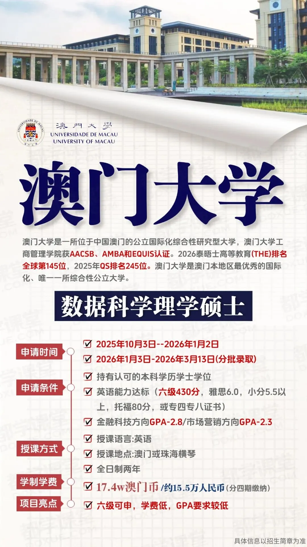核心领域中,金融科技是主打方向,毕业生凭 “金融 + 数据” 复合能力,可入职澳门国际银行、汇丰银行等机构,任量化分析师、金融数据分析师等职,澳门起薪 2.5-3.5 万澳门元 / 月,大湾区内地城市约2-3 万元 / 月,量化岗位年薪可达 40-80 万元。