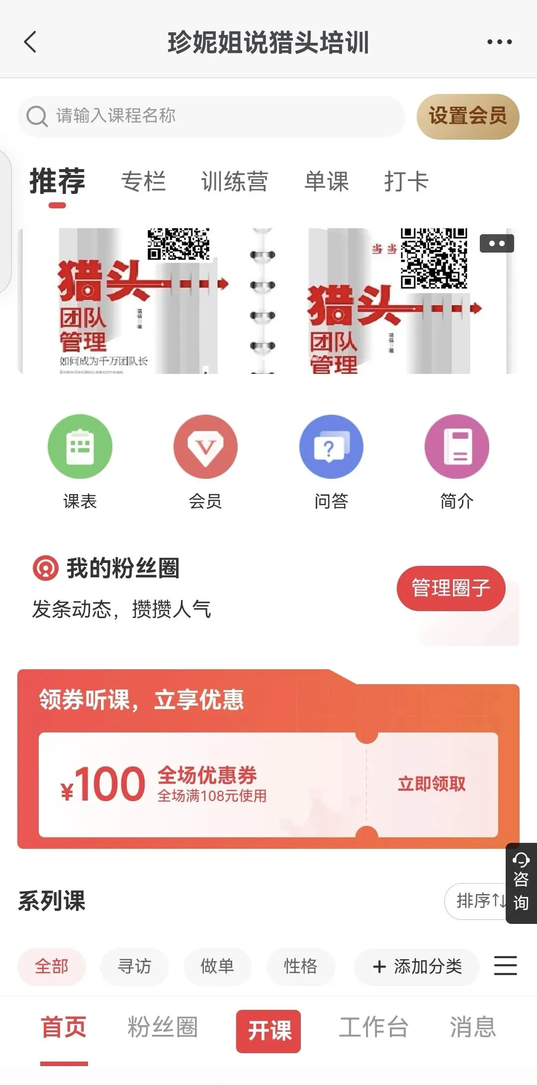 即日起至2026年3月31日上午12:00(优惠券领取及兑现时效期内),千聊店全场,提供减100元优惠券。
