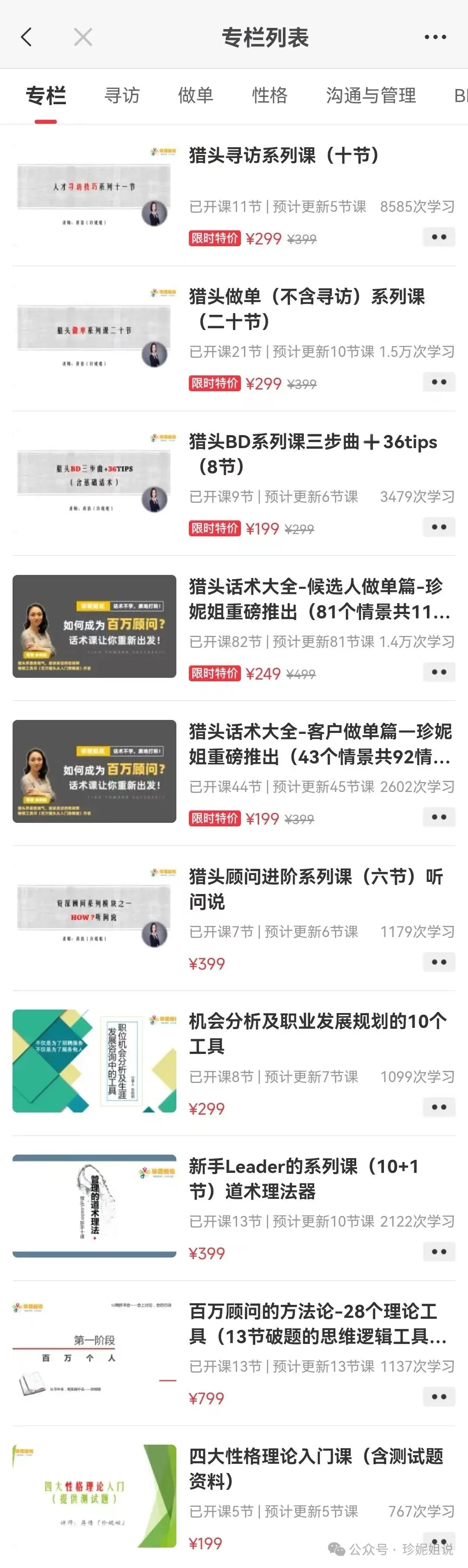 每个系列看起来形式不一致的课,都是后续根据需要而新增的课程。比如做单系列里的如何判断一个新客户的职位是否靠谱就是新增课程。