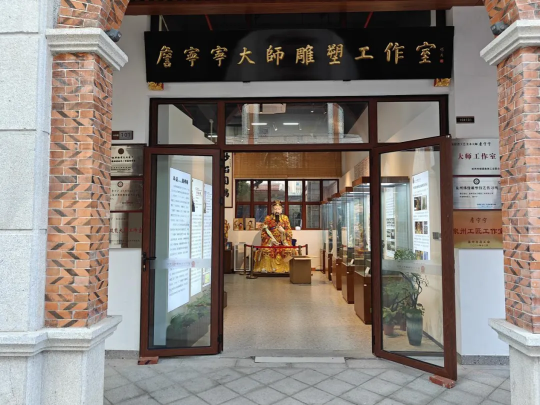 泉州工艺美术合作社“人才之家”坐落于泉州古城核心区,占地面积达9000平方米,设有工艺美术展售馆、大师工作室、研学及临展场地、多功能报告厅等业态空间。作为复兴泉州37个传统工艺美术技艺品种传承基地,通过深化政产学研合作,定期举办工艺美术集市、人才沙龙、政策宣讲会等活动,帮助挖掘本地资源及生态产品价值,成为集文化传承、产业发展、创作交流、工艺展示、销售体验于一体的综合性平台。目前已成功吸引47名工艺美术大师及传承人入驻,其中7个国大师,涵盖花灯、福船制作、漆画、妆糕人、脱胎漆器、木偶头雕刻、金苍绣、陶瓷、木雕、竹藤编等26个传统艺种。