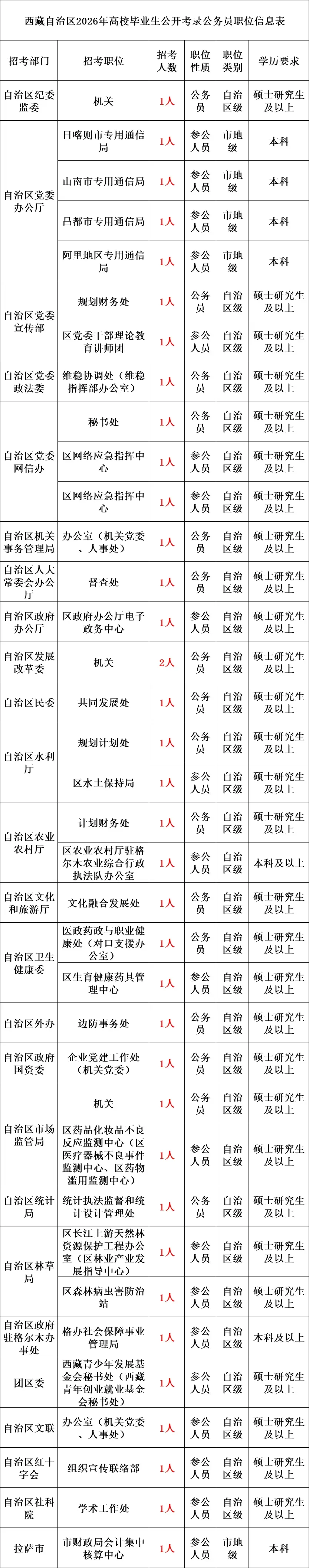 根据《中华人民共和国公务员法》《公务员录用规定》《西藏自治区高校毕业生公职岗位考录(招聘)实施办法(试行)》等法律法规,经研究决定,组织实施西藏自治区2026年高校毕业生公开考录公务员工作,现将有关事宜公告如下。