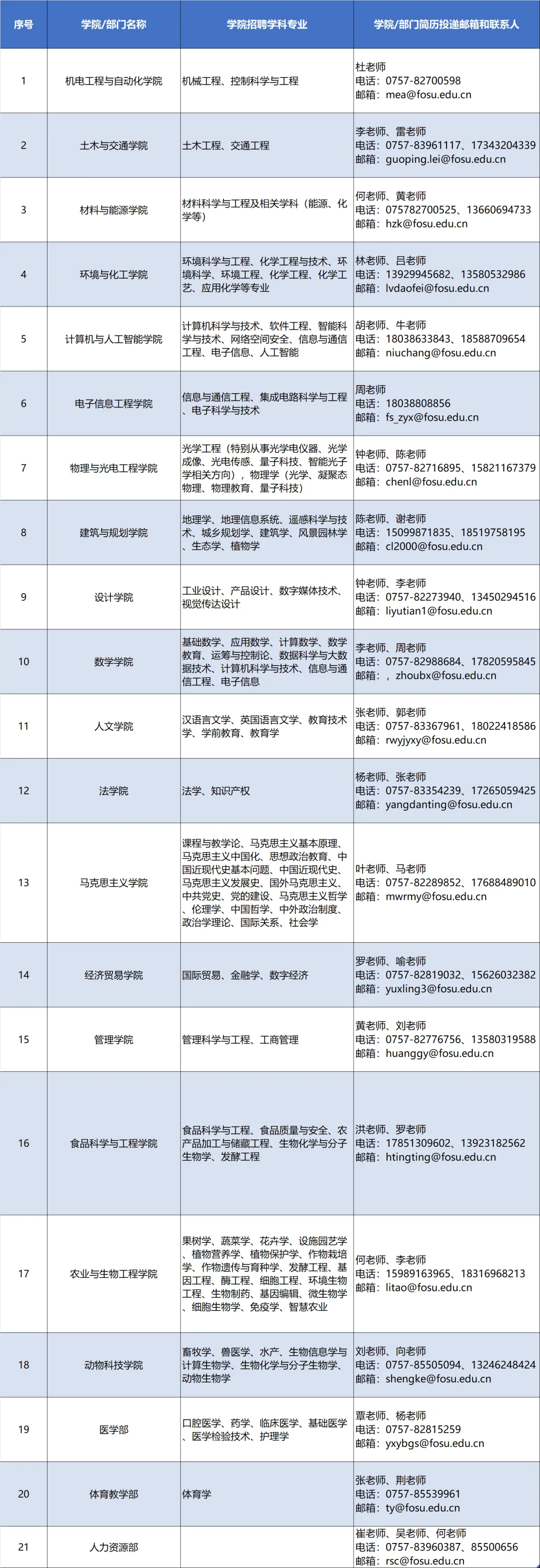 应聘条件:符合学校办学定位及相应的学科专业建设发展需要,尤其是在学校学科建设中能起重要作用的人才;或补充学校思政课、公共课、基础课和个别师资基础薄弱专业等急需师资;或符合弥补学校现有学科专业人才短缺或年龄结构失衡需要,在改善师资队伍结构方面不可或缺的人才;或符合我校服务国家、广东省和佛山市重大发展战略和重点产业布局需要,且能够对我校相应的人才培养、科技创新起到重要作用的人才;或为我校特别需要的紧缺关键岗位人才。申请者应具有博士学位或硕士学位且副高及以上职称。