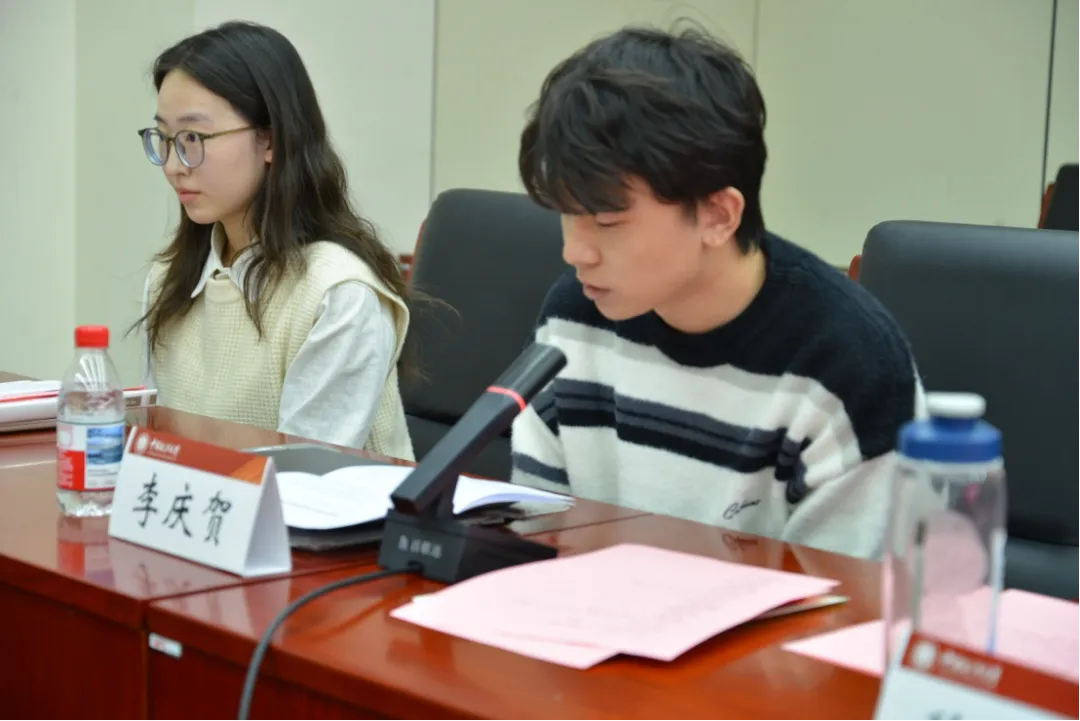 随后,获奖师生代表分享了他们的成长与感悟。2023级硕士研究生李庆贺在发言中分享了其在大成律师事务所国际贸易救济团队的实习心得。他结合反倾销、反补贴案件中的具体操作,阐述了通过实务工作如何将教材中的理论概念转化为具象化的专业认知。