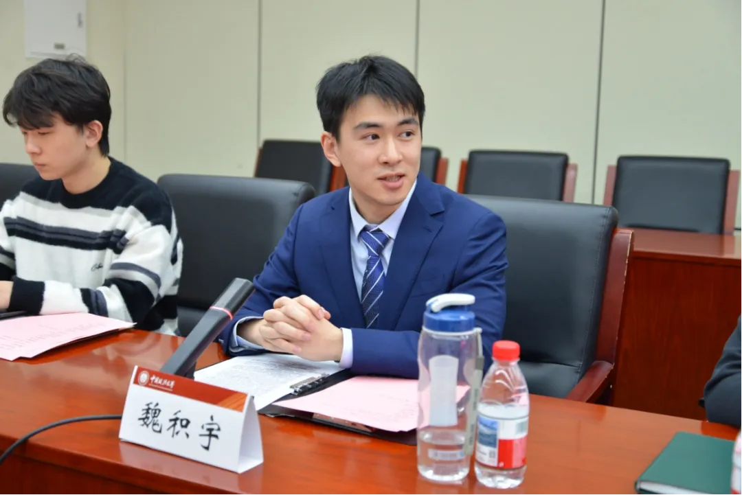 2024级硕士研究生魏积宇分享了其从参与WTO模拟法庭竞赛起步,到选修校企合作课程、进而开展相关课题研究的学术路径。他表示这一过程使其对国际贸易救济领域的理论前沿知识与法律实务的复杂性有了更系统的认识。