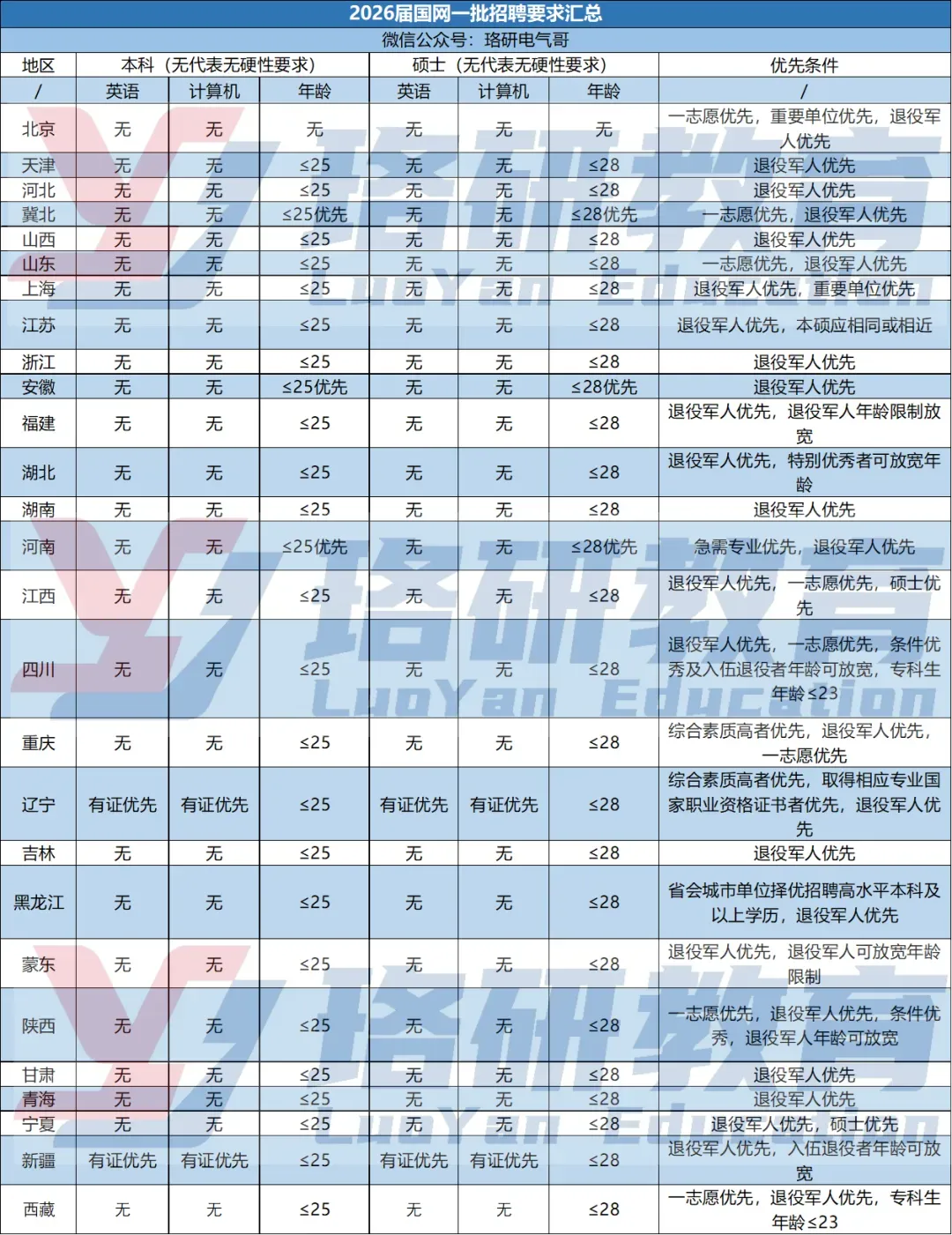 想了解26届国网一批各省招聘条件可点击链接:26届国网一批各省招聘人数和招聘条件汇总!
