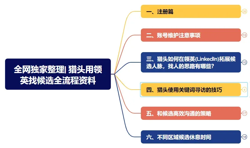 除此之外脑图中还有联系海外候选的推荐时间,猎头话术参考,猎头领英个人简介参考等内容。