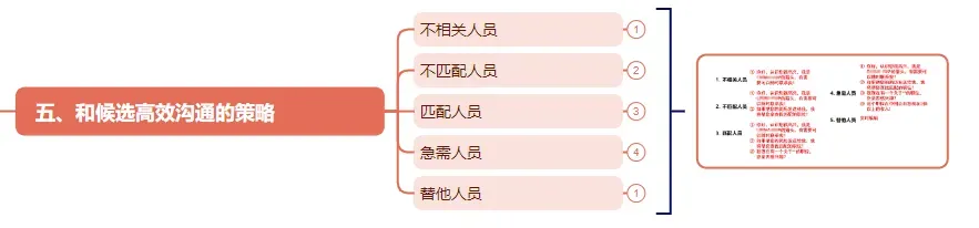 我们可以将要沟通的候选分成几大类,比如不相关人员/不匹配人员/匹配人员/急需人员/替他人员,不同的候选发送不同数量的话术作为开场,在候选有回复时就可以迅速锁定候选是哪一类,方便进一步的沟通