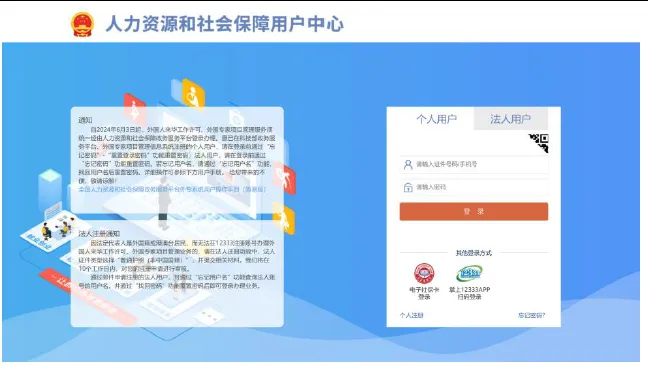 人力资源和社会保障用户中心登录页面图示