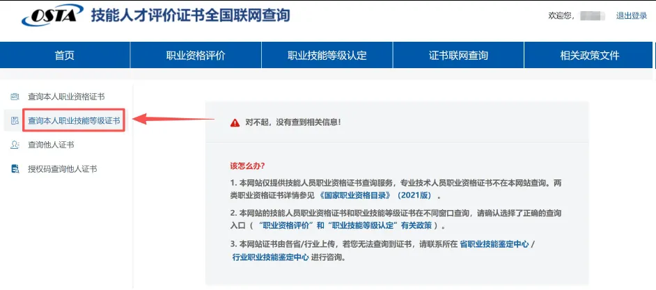 2、查询本人职业技能等级证书