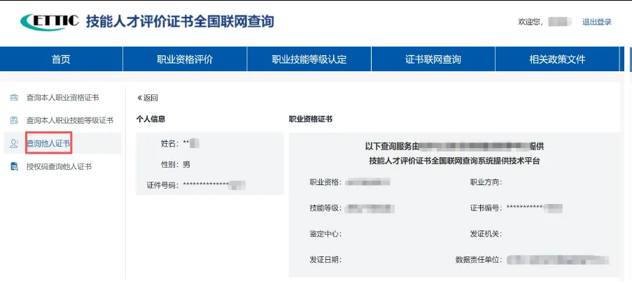 步骤:完整填写 “证书编号、证件号码(身份证号)、姓名”,提交后显示查询结果(脱敏显示)。